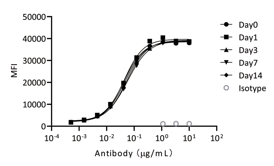 通过Binding FACS检测,待测抗体在血清中至少可以稳定14天